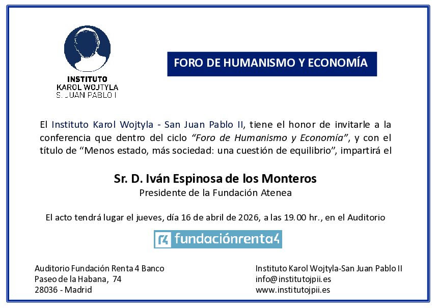 El Instituto «Karol Wojtyla-S. Juan Pablo II» se complace en anunciar el patrocinio del «CURSO DE INTRODUCCIÓN A LA ESCUELA AUSTRIACA DE ECONOMÍA» ofrecido por la Universidad Villanueva.